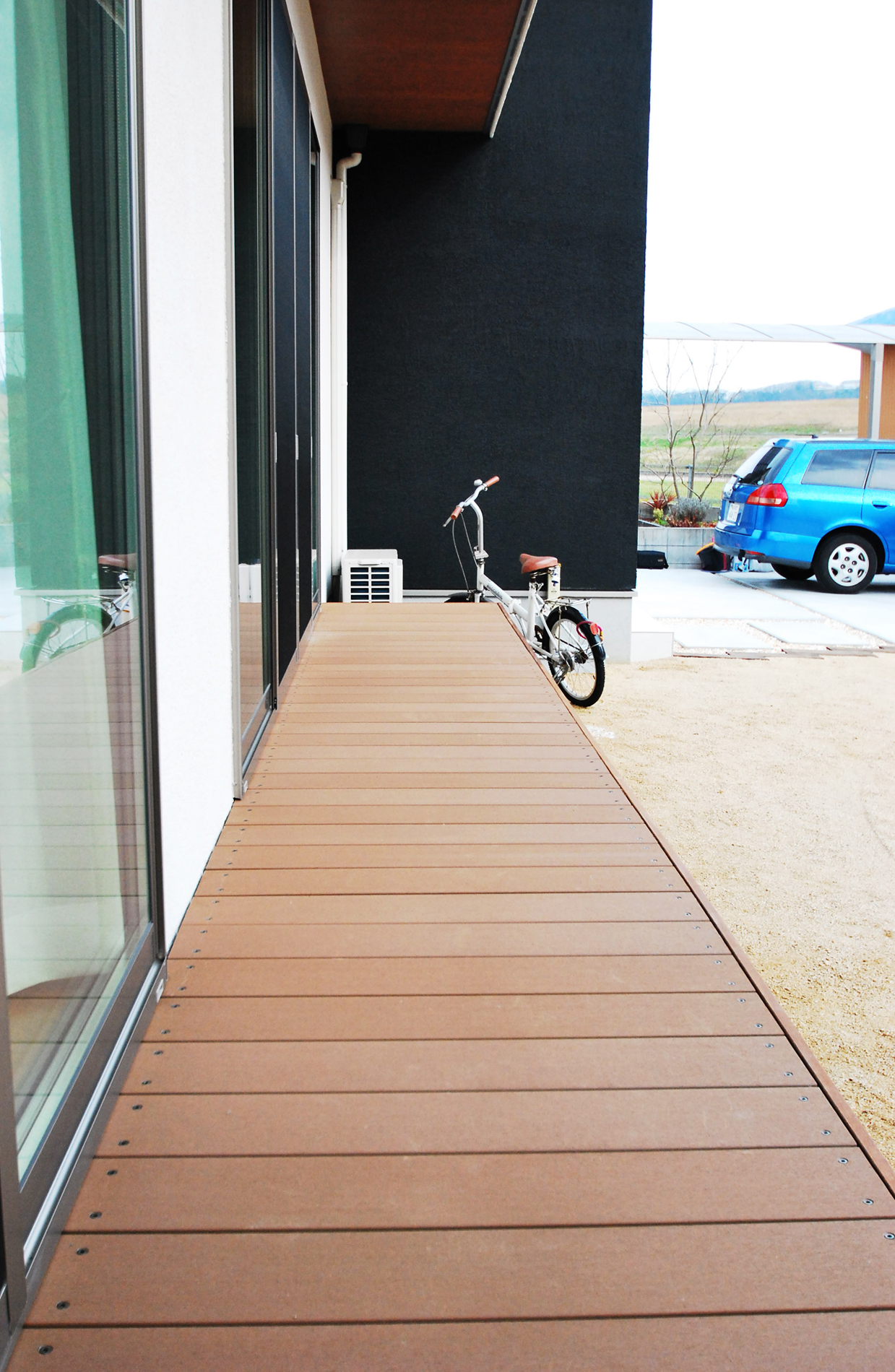リビングに接する奥行きのあるウッドデッキは多目的に使用できます。