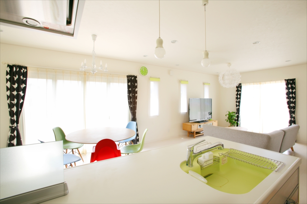 遊び心に富んだ 北欧風モダンの家。 部屋全体が見渡せるアイランドキッチンの周りは、お子様のランニングコースに。 家中を走り回った後は、リビング続きの和室で一休み。 ウォークインクローゼットを設けた主寝室は、 自然に眠りにつけるようにダークカラーでまとめました。 色使いをとことん遊んだ水回り。 2階トイレは主に家族で仕様する為、一番ビビットな壁紙を使用しました。 色どり豊かなコーディネートが訪れる人を魅了する素敵なお家です。 共有:クリックして Twitter で共有 (新しいウィンドウで開きます)Facebook で共有するにはクリックしてください (新しいウィンドウで開きます) 関連