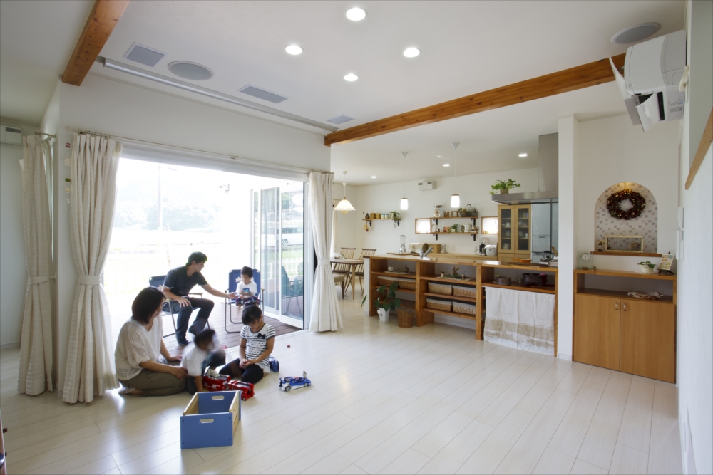 訪れた人を楽しませる仕掛けがいっぱい! バーベキューやルームシアターが楽しめるお家。 季節の花を寄せ植えして緑をふんだんにあしらった玄関アプローチや、 曲線が可愛い門扉、アンティーク調の枕木がナチュラルな感じを演出しています。 中2階のスキップフロアを利用したご主人自慢のホームシアター用スピーカーや、 大型スクリーンはリビング天井にスッキリ収まります。 トップライトやロフトもついたファミリースペース。 TVを置くことでお子様だけの秘密のリビングに変身。 共有:クリックして Twitter で共有 (新しいウィンドウで開きます)Facebook で共有するにはクリックしてください (新しいウィンドウで開きます) 関連