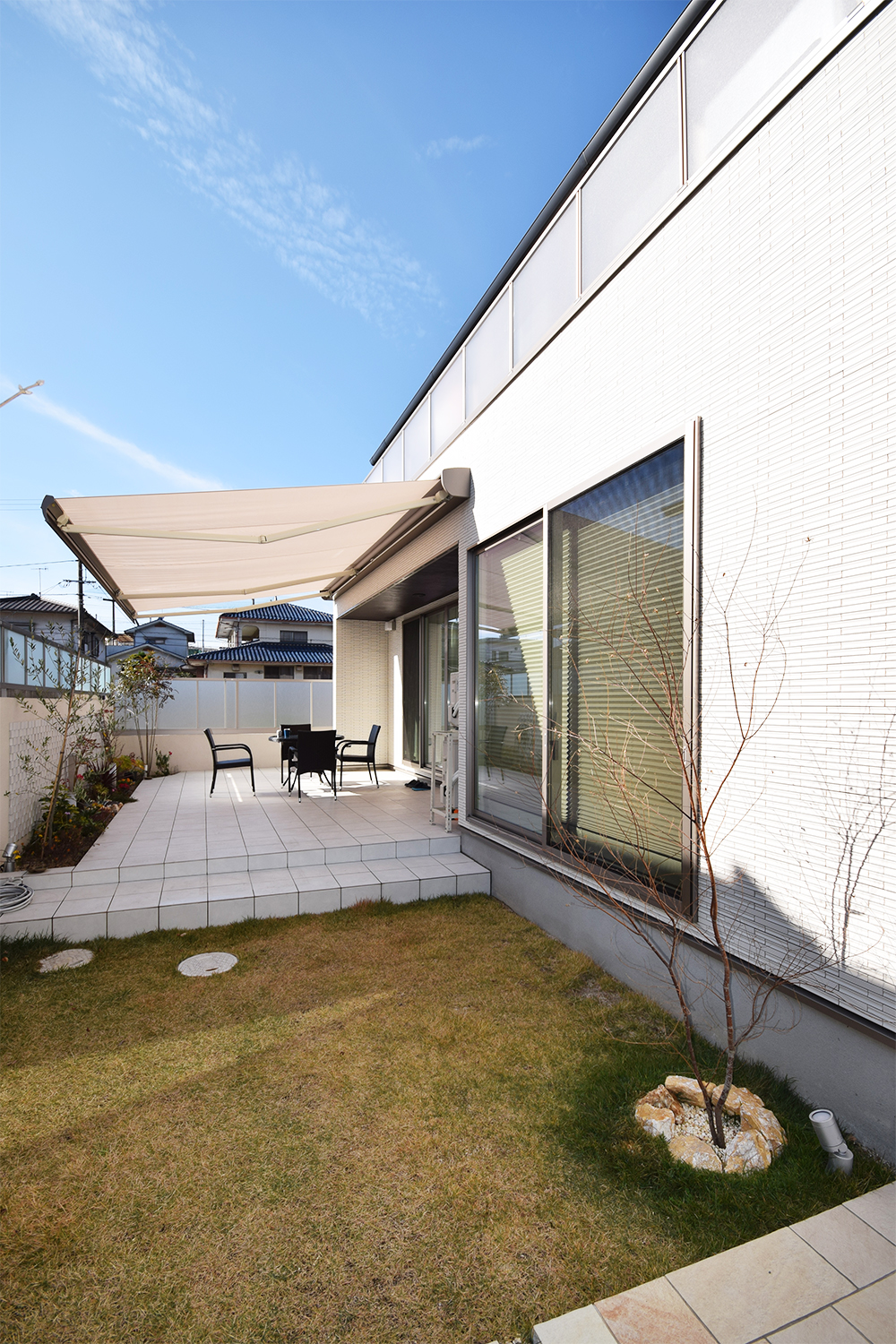 ゆっくりお茶を楽しめそうなテラスは日差しが暖かく降り注ぎます。