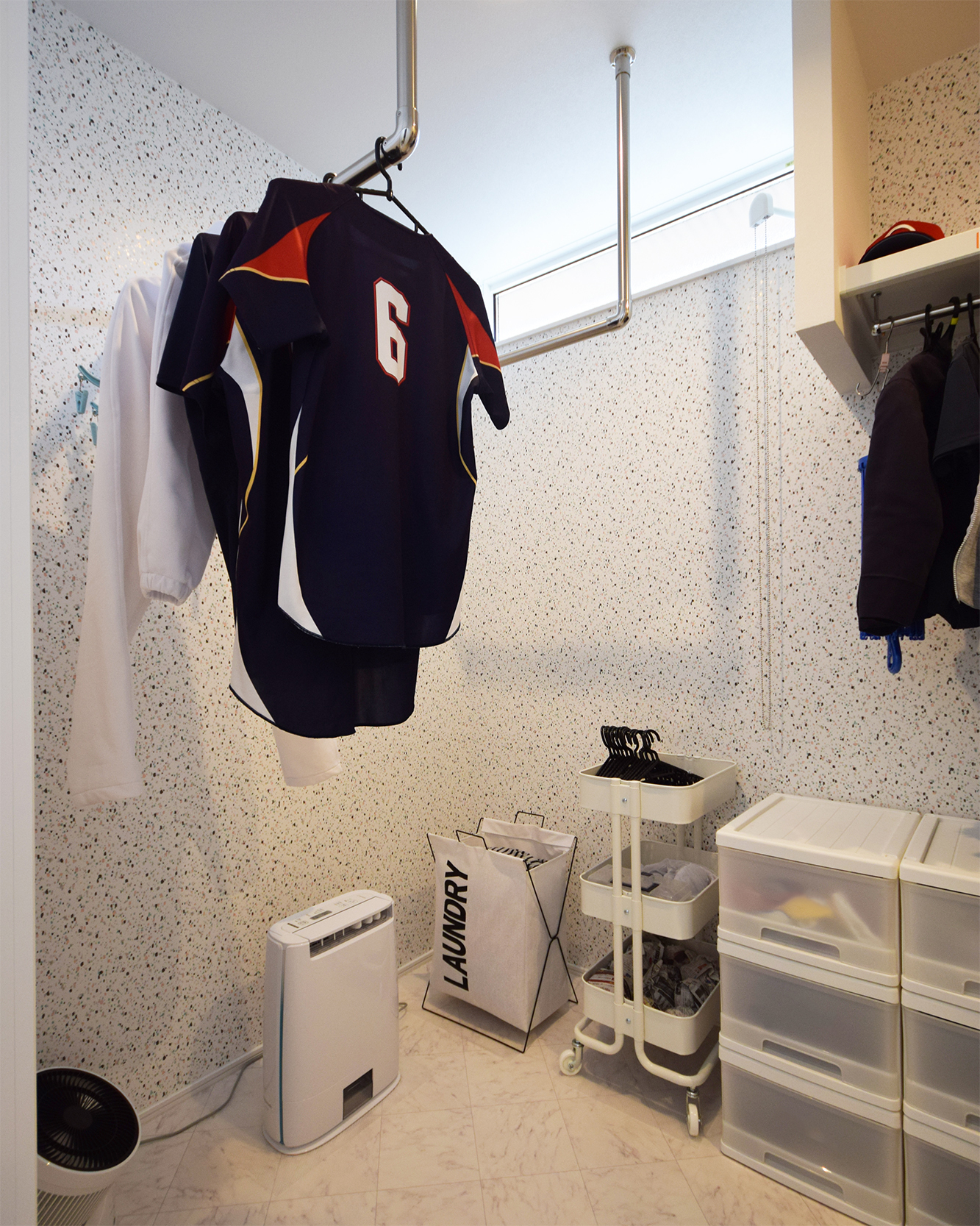 ランドリールームはウォークインクローゼットとしても活用できるので