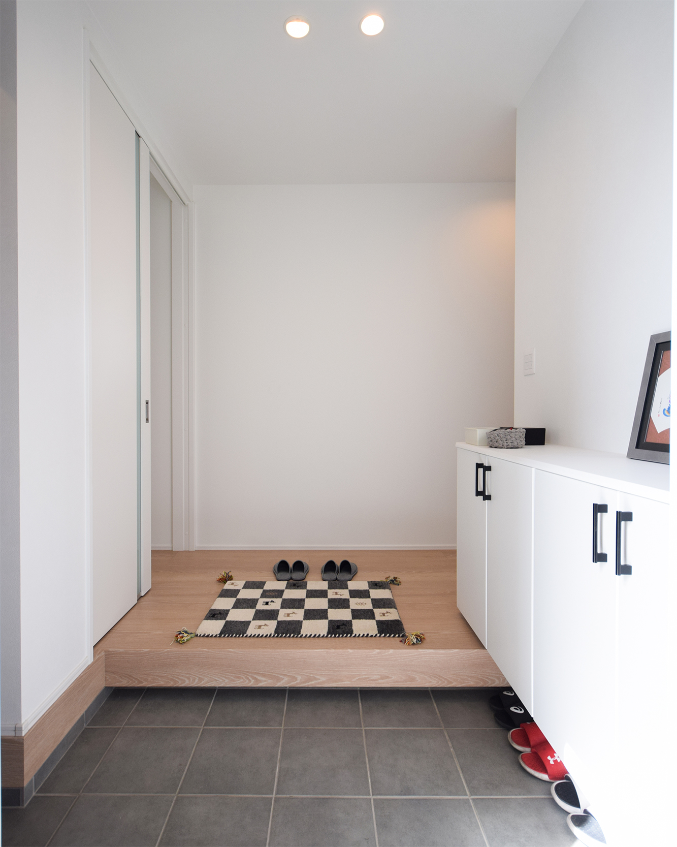 玄関ホールはスッキリと白でまとめたシンプルな空間に。