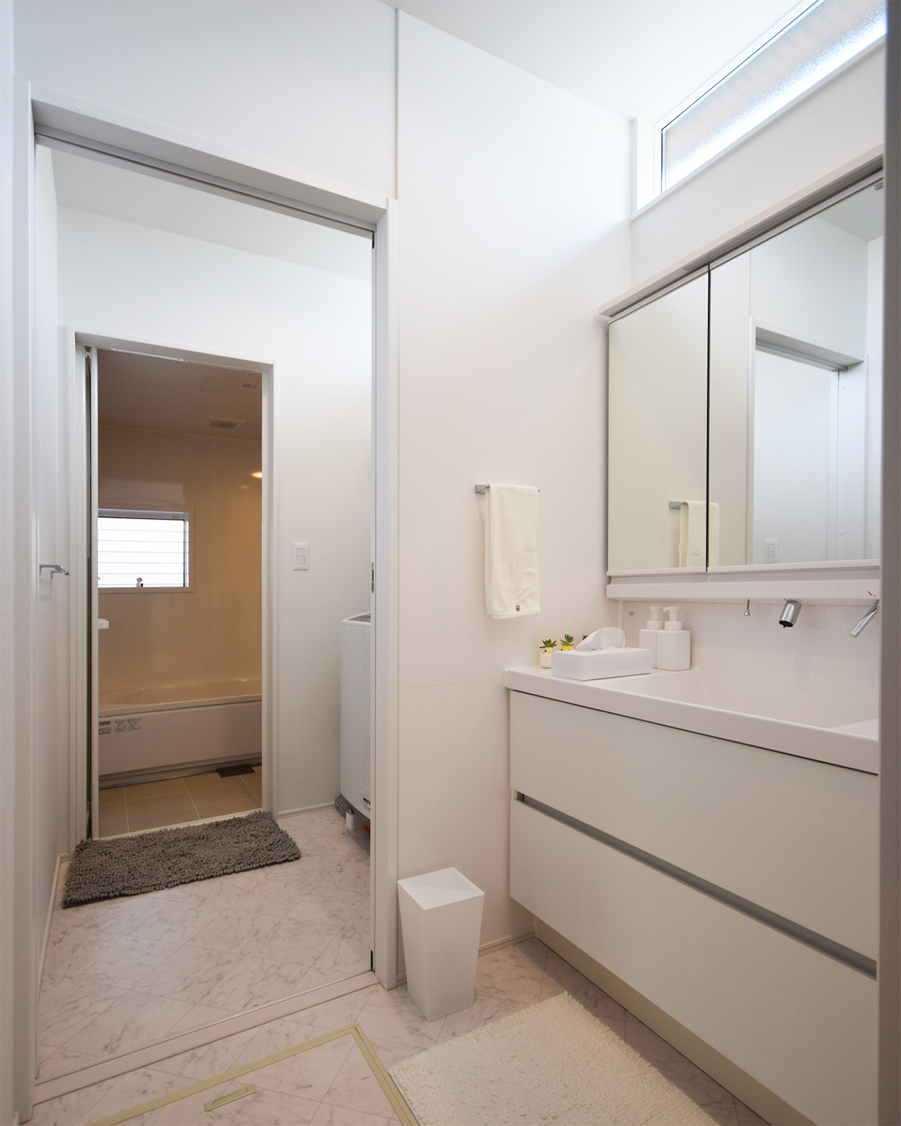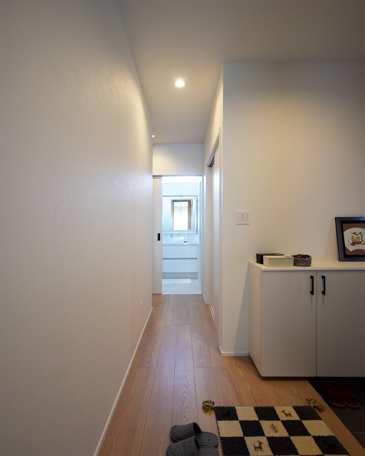 お家に入ってすぐに洗面へとつながる動線を取り入れて