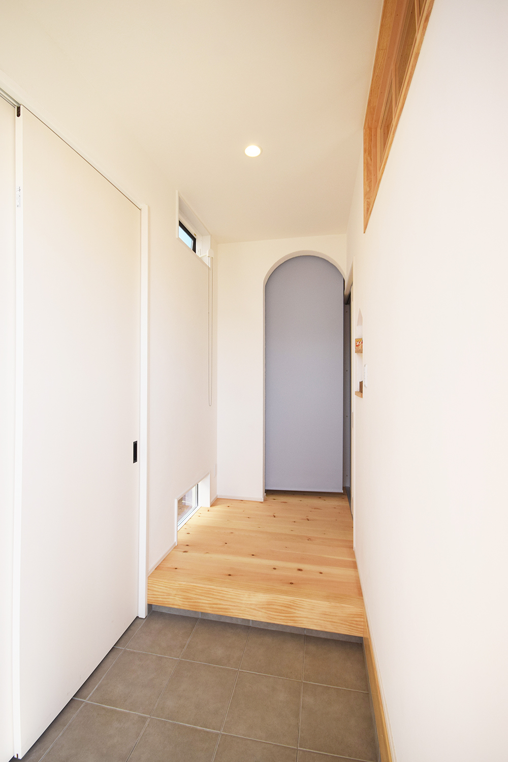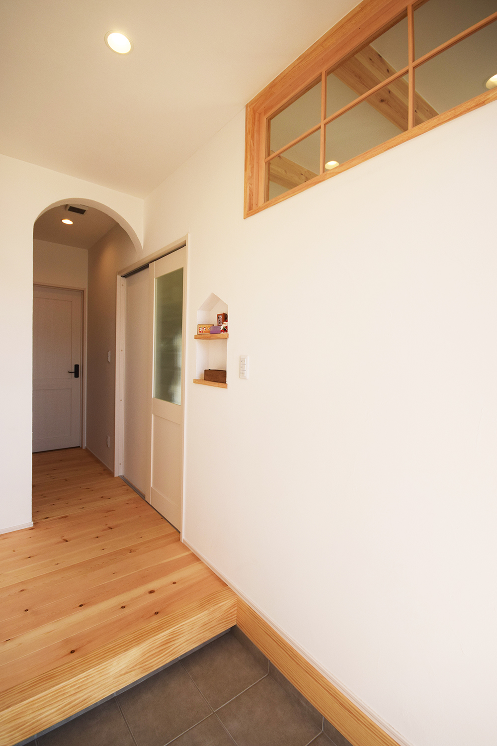 玄関ドアをあけると・・・アールの垂れ壁がかわいい