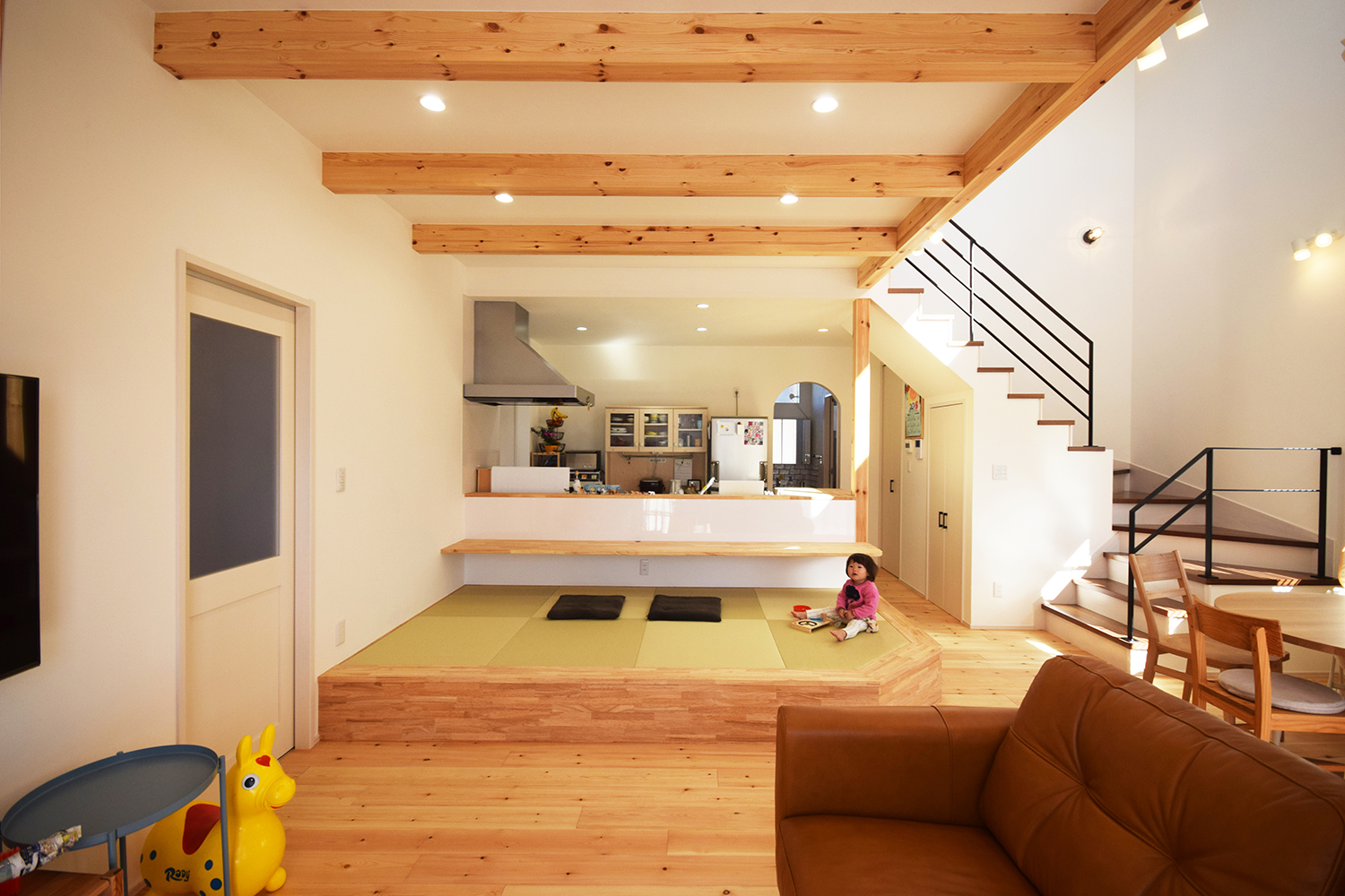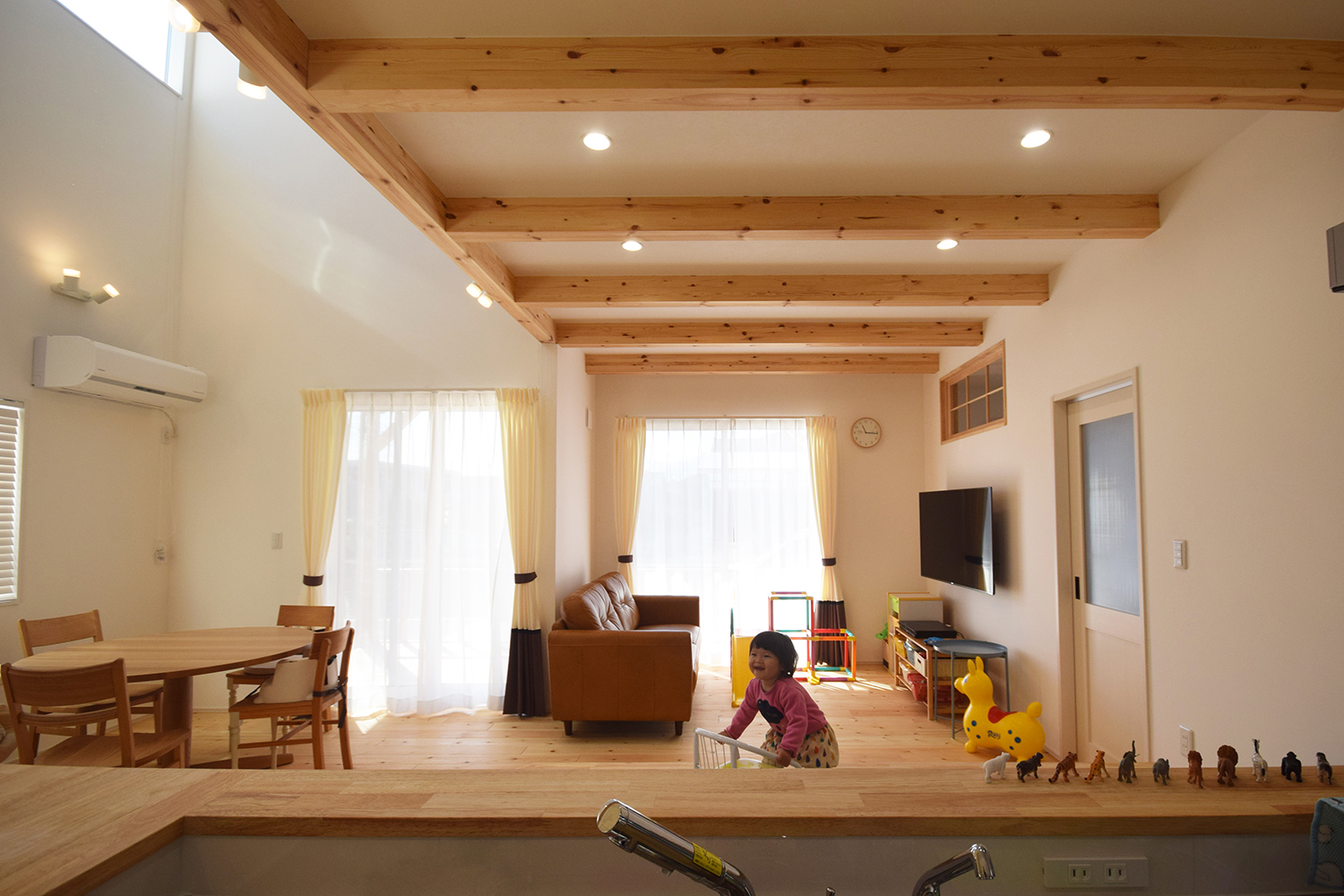 LDKは梁出し天井の優しい色合いでまとまった空間です。