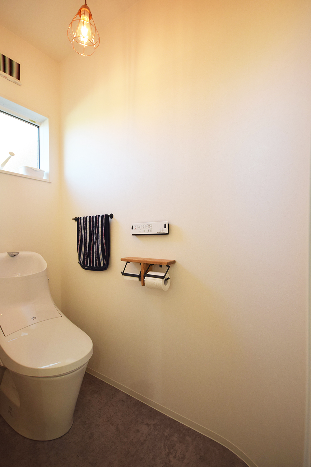 トイレの壁もゆるやかなカーブで一工夫しました。