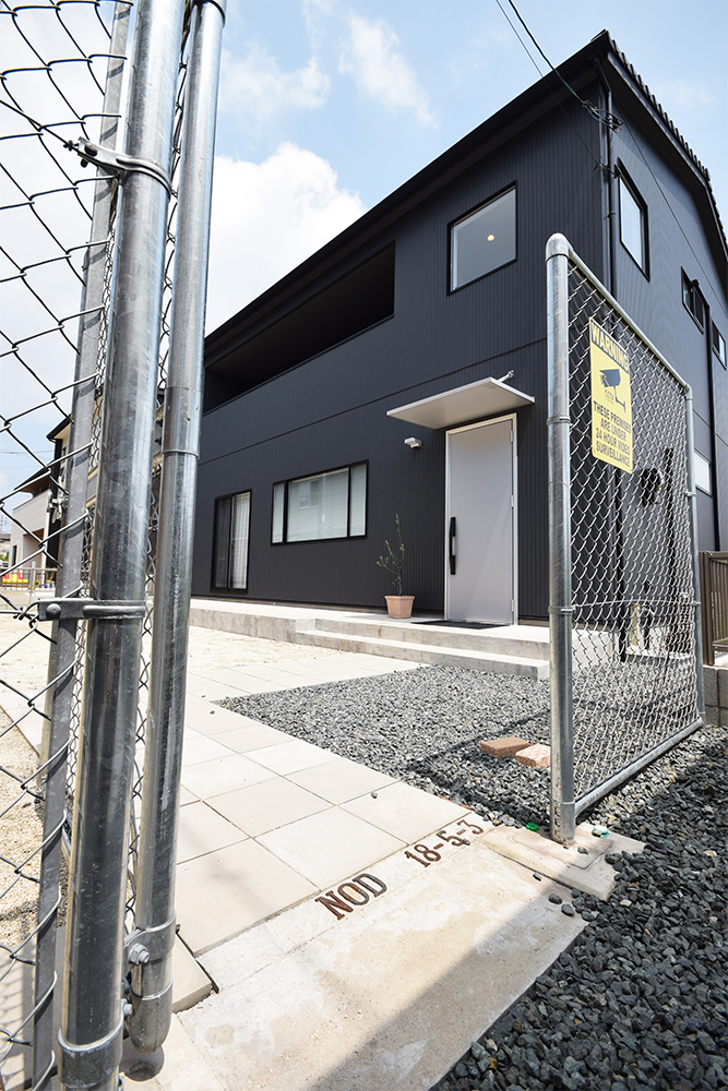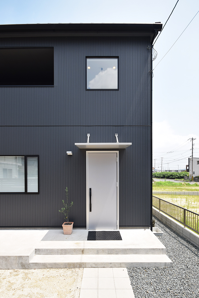 スッキリとした倉庫風の外観。