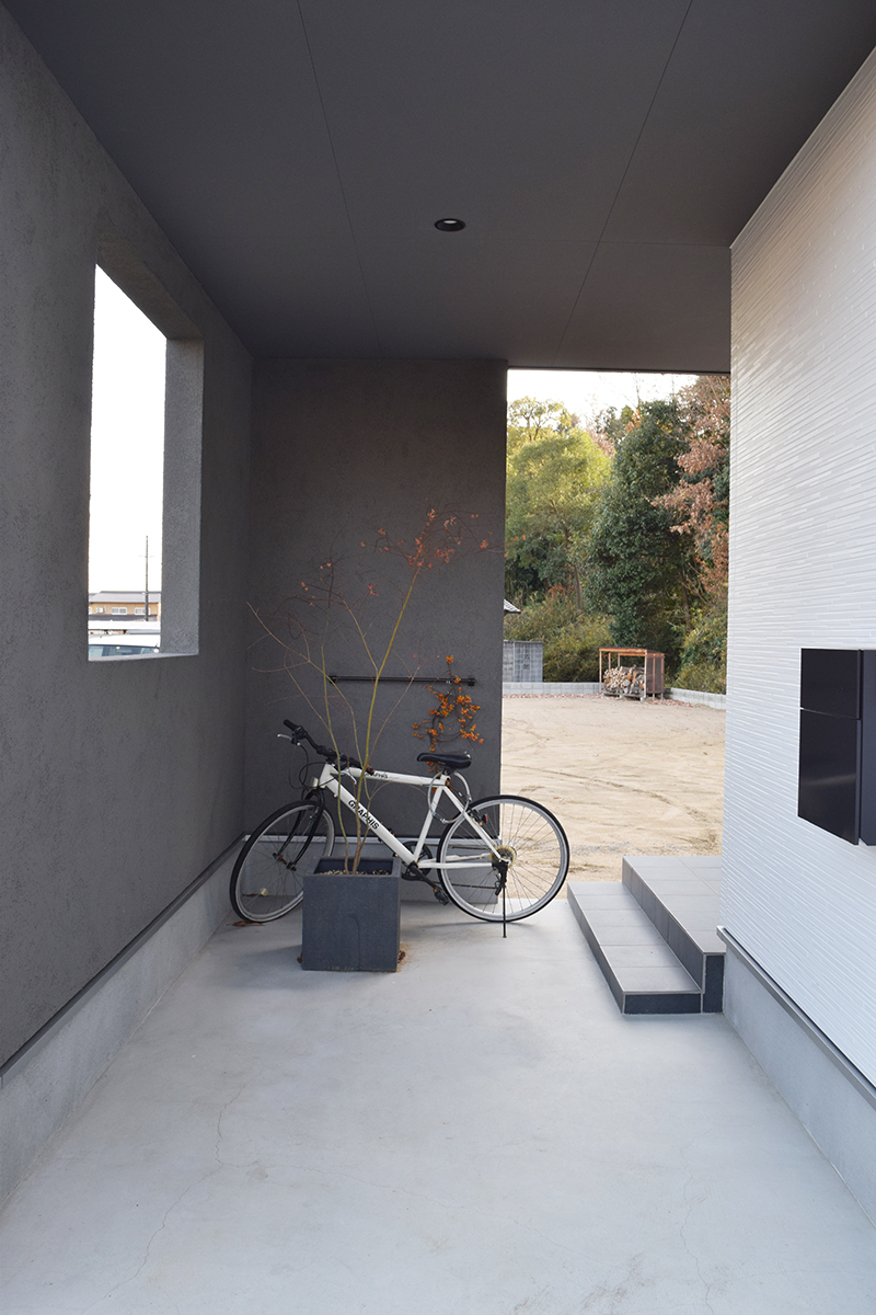 インナーポーチ部分も土間で仕上げ、多目的に使用できるスペースへ。