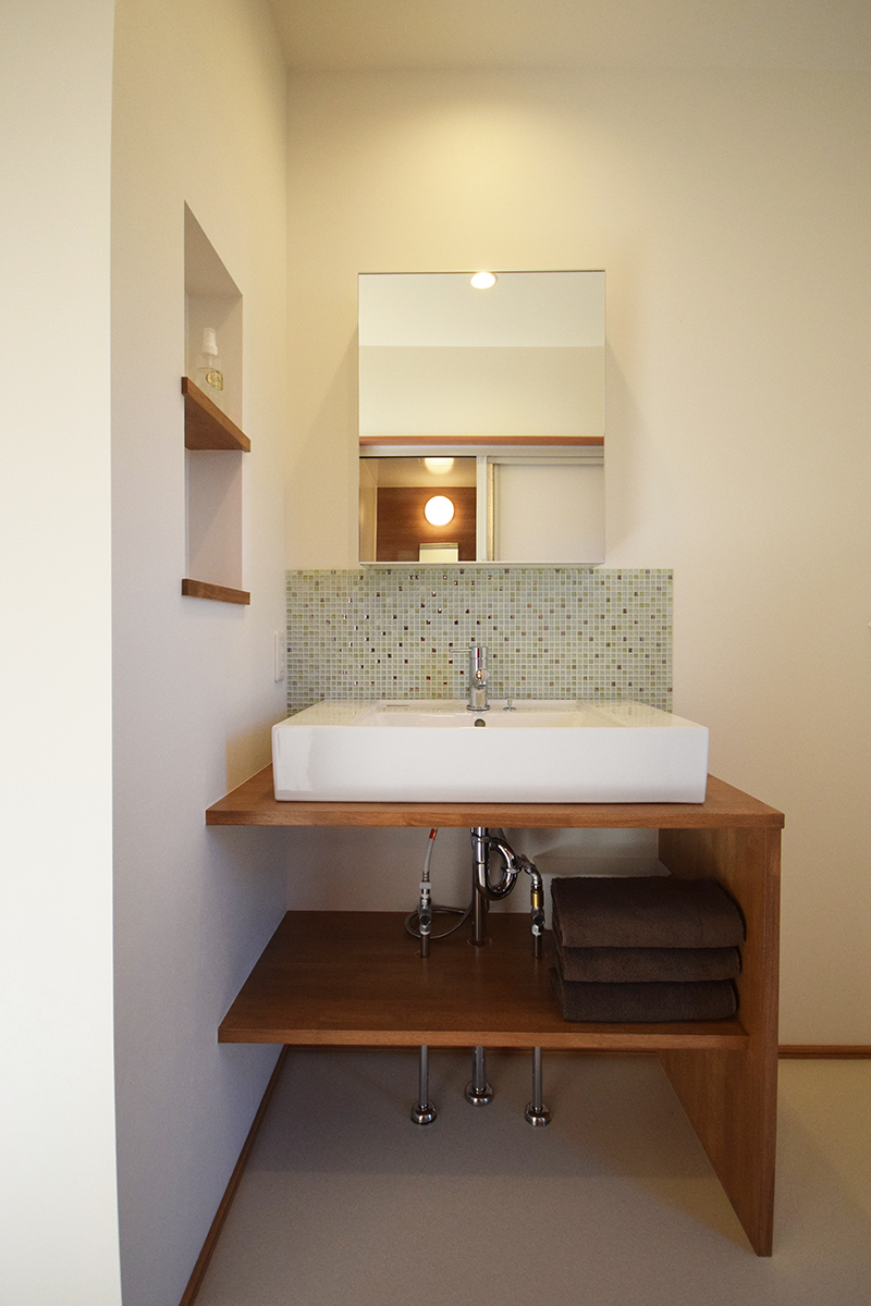 お家の雰囲気に合せたオーダーメードの洗面化粧台。