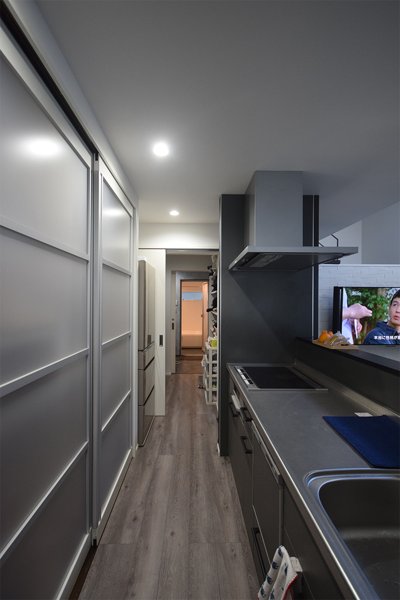 急な来客も背面収納を閉めればスッキリ見せることもできます。