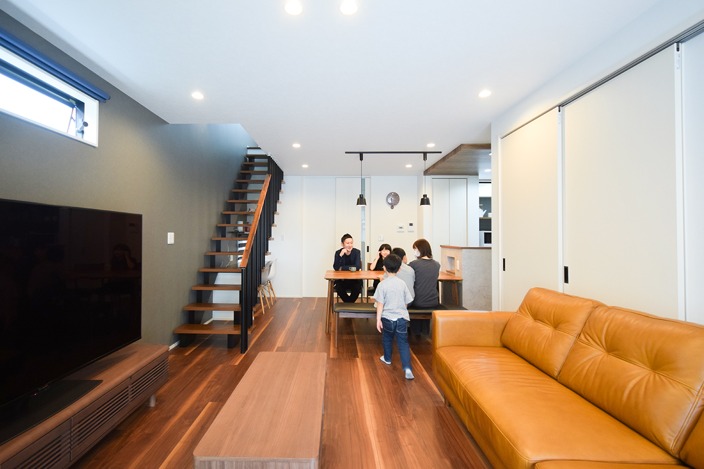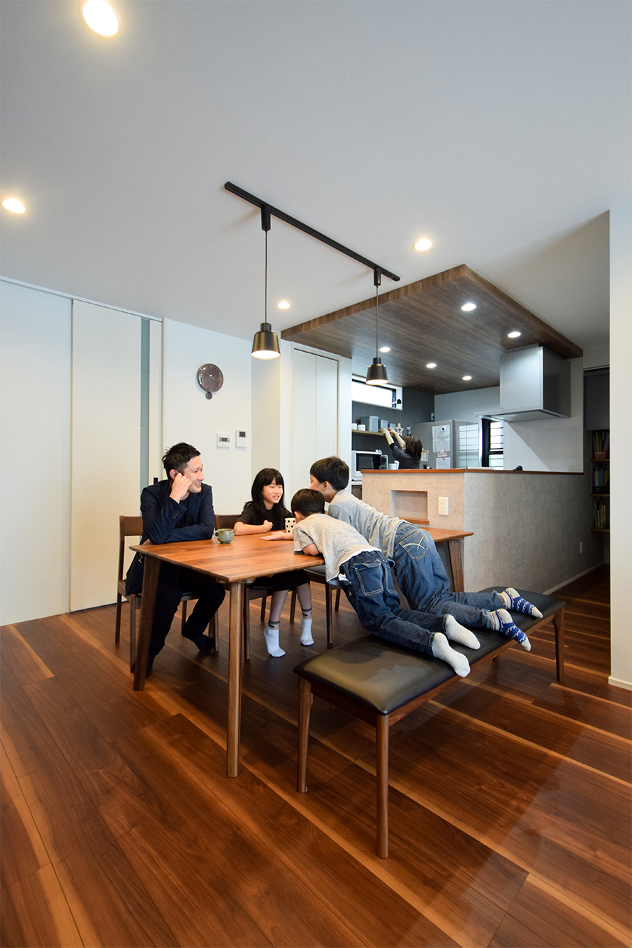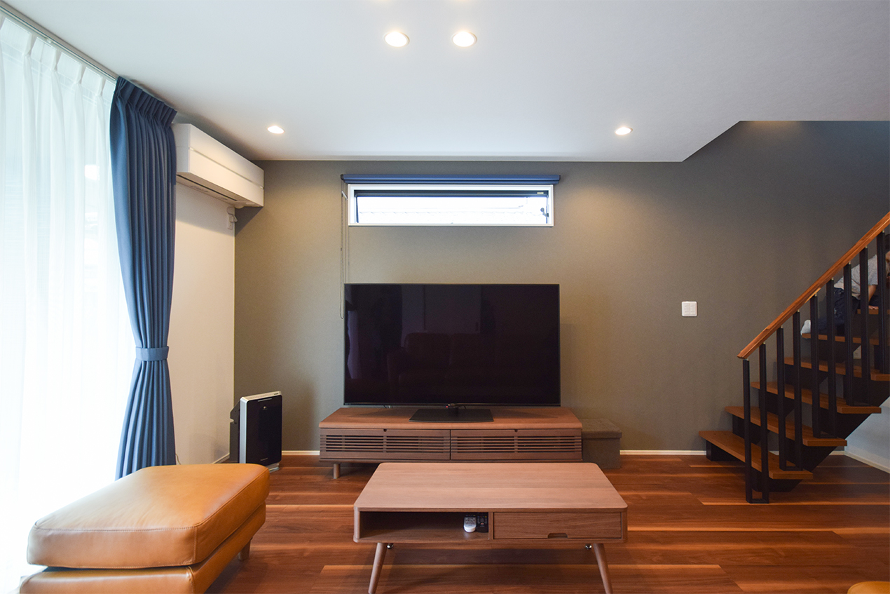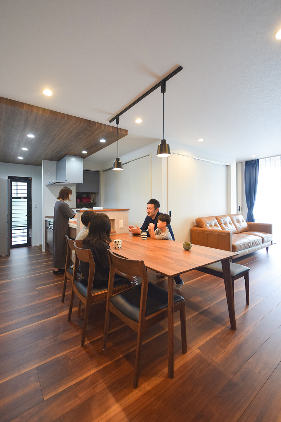 約22帖のLDKはウォールナットと白でまとまった
