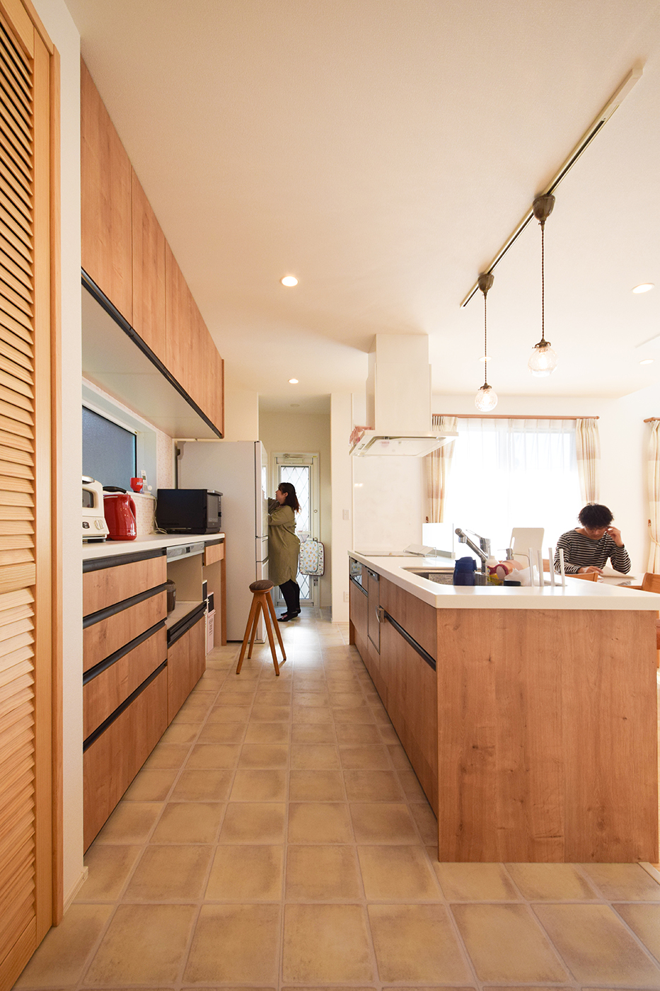 キッチンは配膳や作業が楽になるアイランドタイプに。
