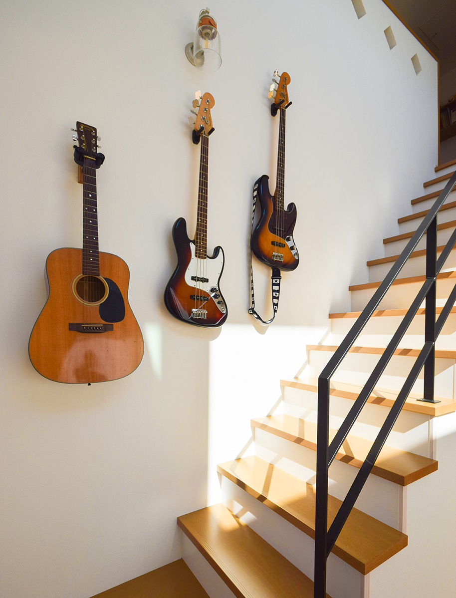 デザイン性のあるアイアン手摺の階段を上がってすぐの