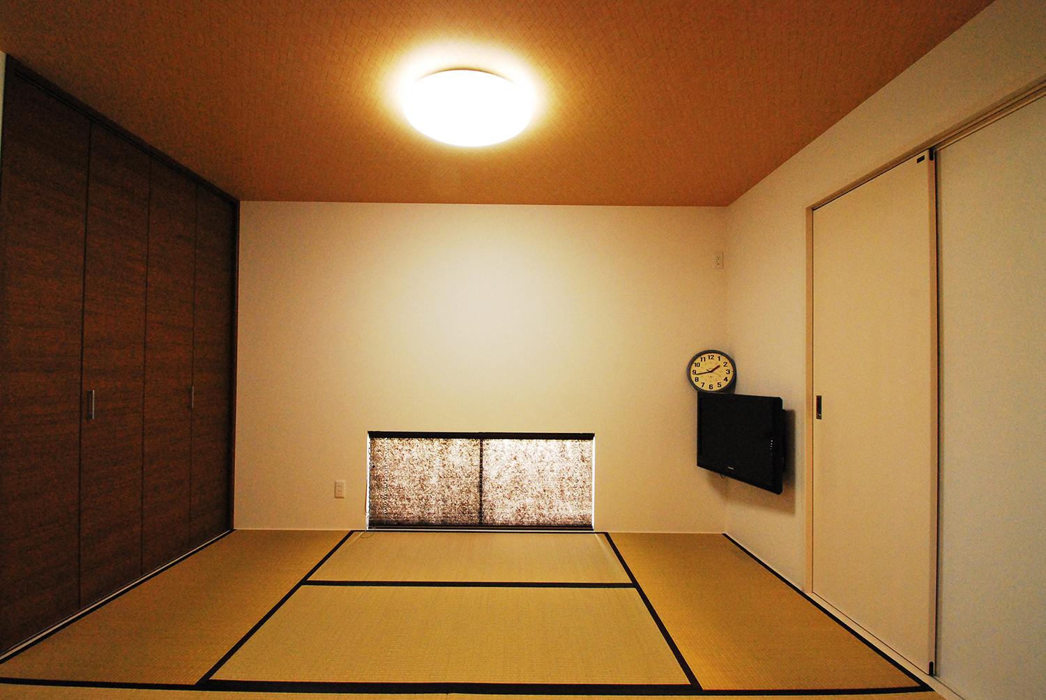 またテレビサイズに合った壁タイルが、広いリビングを引きしめるアクセントに。