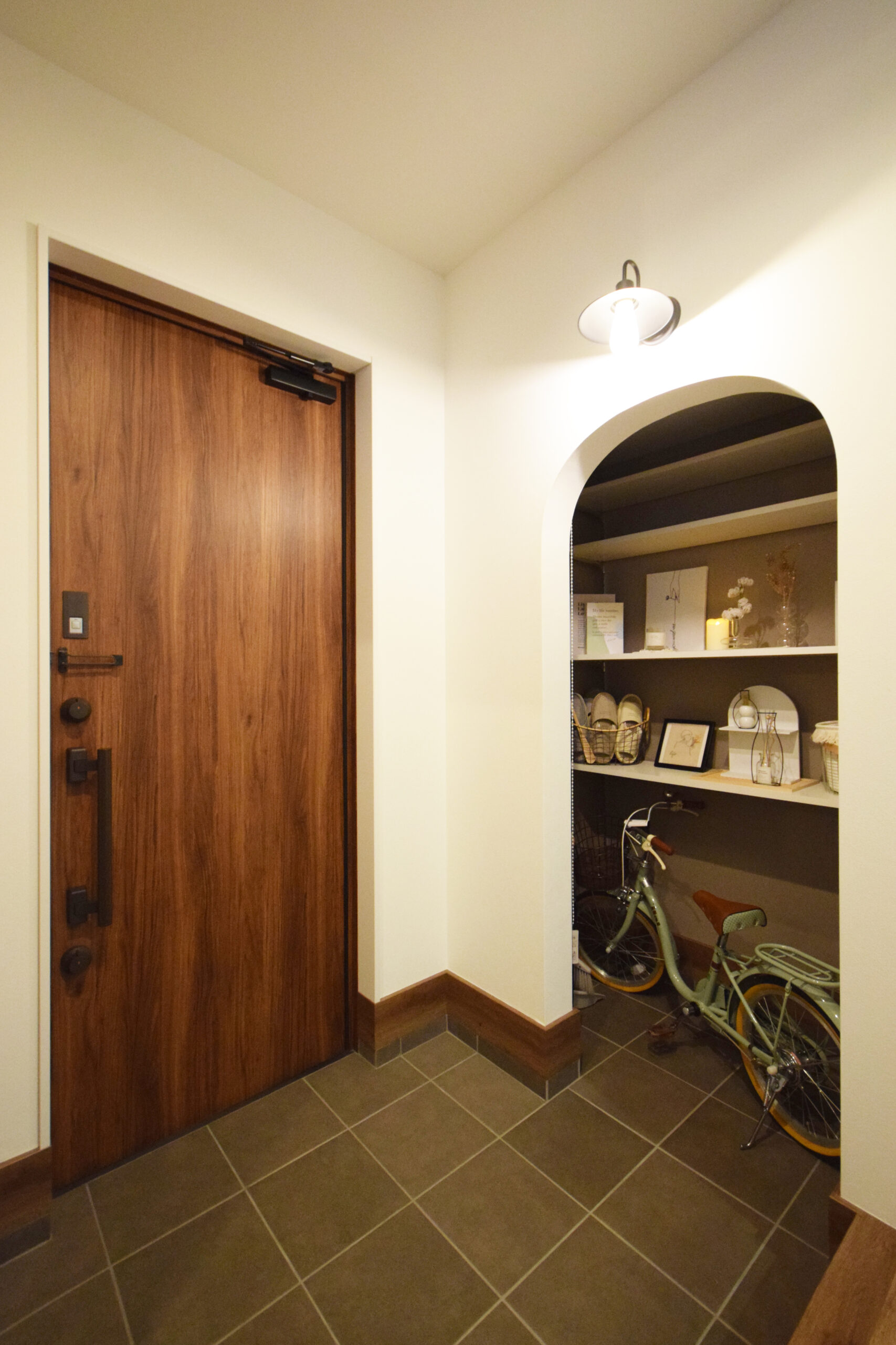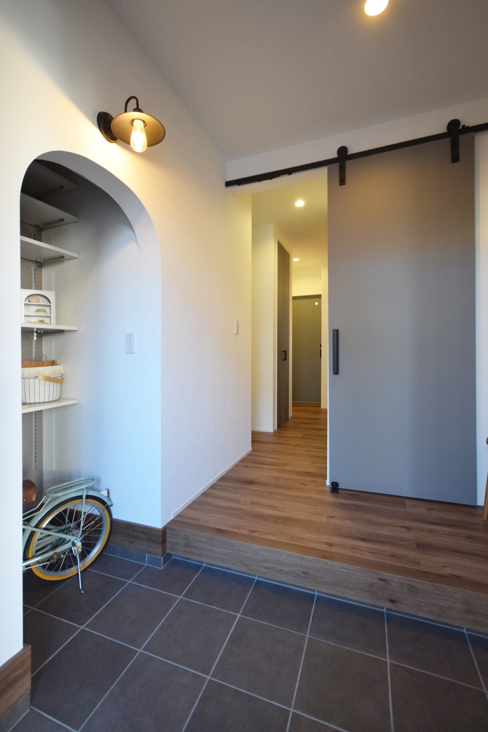 玄関扉を開けるとまず目に飛び込んでくるバーンドア。