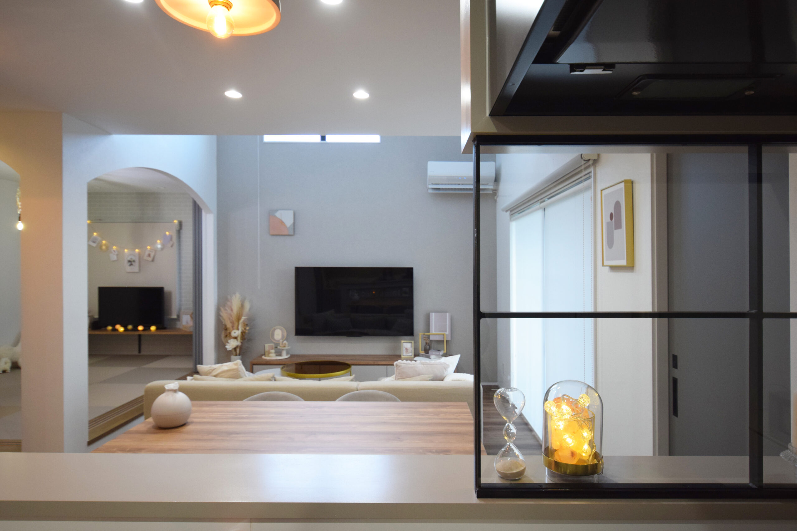 全体のトーンをそろえ室内全体に柔らかな雰囲気が漂うK様邸。