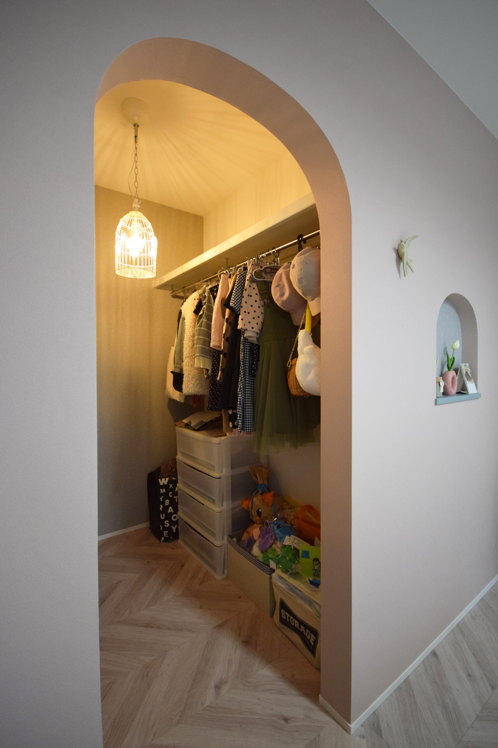 またここにあるかわいい小窓は、裏にあるウォークインクローゼットに繋がっているので、そこから小物やランドセルを収納できちゃいます!!