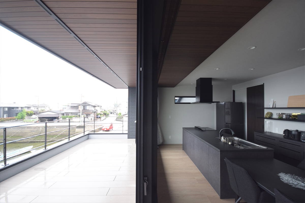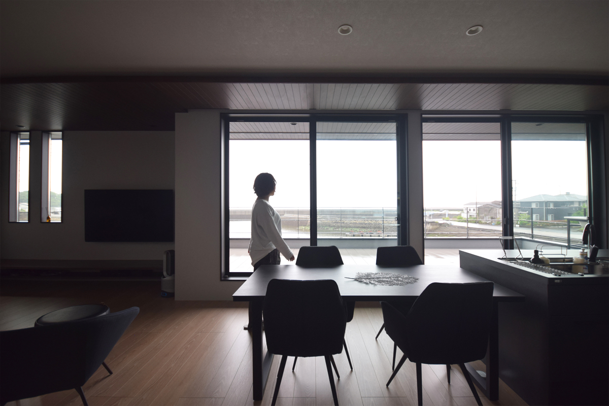 海沿いに佇む黒を基調とした外観のS様邸。