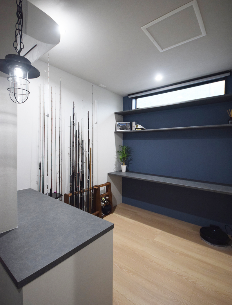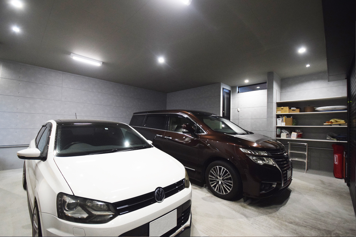 1階には2台駐車可能なビルトインガレージと、ご主人の仕事兼趣味室を設けました。