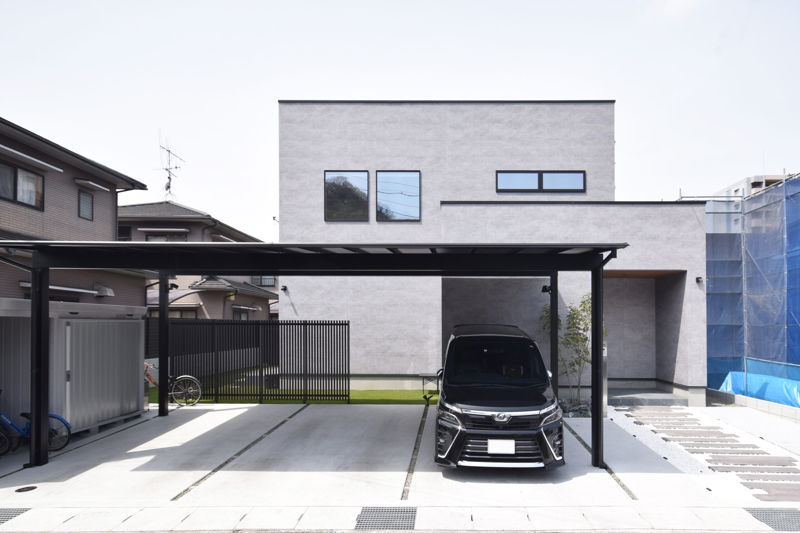外壁にはコンクリート調のサイディングを採用しました。