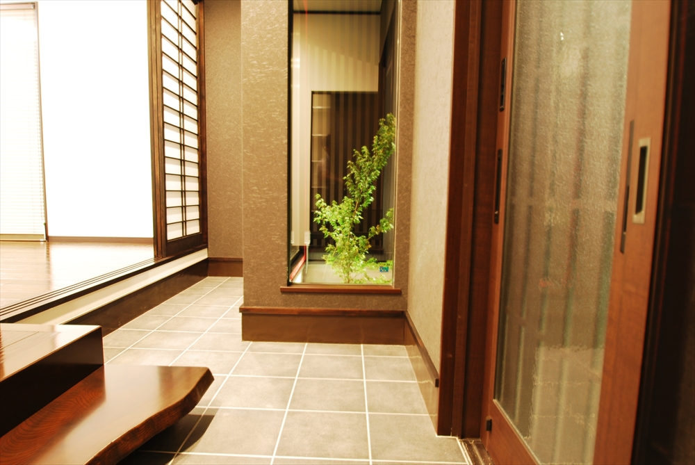 昔ながらの要素を現代風に取り入れた 和モダンテイストの邸宅。 坪庭は白玉砂利やタイル、植栽でオシャレな空間を仕上げました。 玄関扉を抜けると、存在感のある式台に広めの玄関スペースが広がります。 LDKの一角には一段上がりの畳コーナーを施工し、 梁出し天井でバランスよくまとめました。 共有:クリックして Twitter で共有 (新しいウィンドウで開きます)Facebook で共有するにはクリックしてください (新しいウィンドウで開きます) 関連