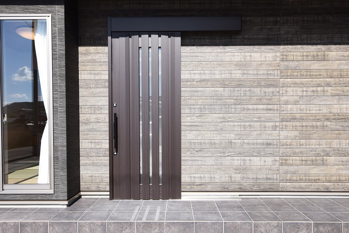 黒と木の外壁で落ち着いた印象の外観。