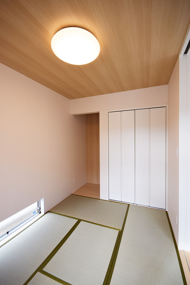 寝室は一部を通常よりも少し高くする事でベッドの代わりとして使用できる空間にしました。