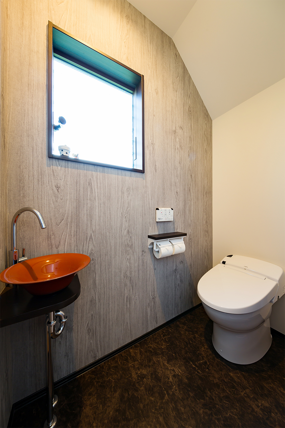 階段下のスペースを活用したトイレスペースは陶器のボールがアクセントに!